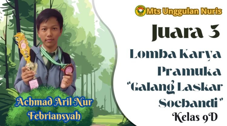 Pesantren Nuris – Prestasi membanggakan datang dari salah satu siswa berbakat asal MTs Unggulan Nuris, Achmad Aril Nur Febriansyah, yang berhasil meraih prestasi gemilang dalam ajang bergengsi bidang kepramukaan tingkat kabupaten.