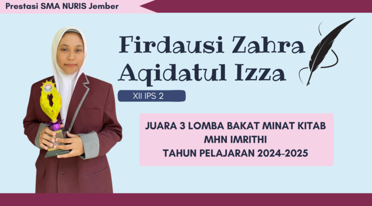 Pesantren Nuris – Perasaan bahagia dan bangga tak dapat terbendung, datang dari Firdausi Zahra Aqidatul Izza kelas XII IPS 2 karena telah berhasil memenangkan Juara 3 MNH Imrithi dalam lomba internal bakat minat kitab tahun pelajaran 2024/2025. Saat perlombaan Firdausi masih menduduki kelas XI IPS 2.