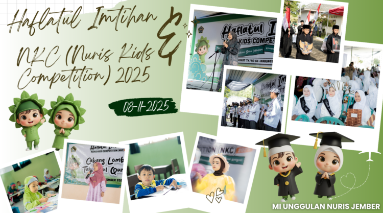 Pesantren Nuris – Halaman MI Unggulan Nuris Jember tampak berbeda pada hari Sabtu, 08 November 2025. Sejak pagi, suasana madrasah sudah dipenuhi tawa riang anak-anak, berpadu dengan sorot mata bangga para orang tua yang setia mendampingi. Hari itu, menjadi momen paling istimewa, sebab madrasah tercinta tengah menggelar hajatan besar yakni kolaborasi dua acara bergensi, Haflatul Imtihan dan Nuris Kids Competition (NKC) 2025.