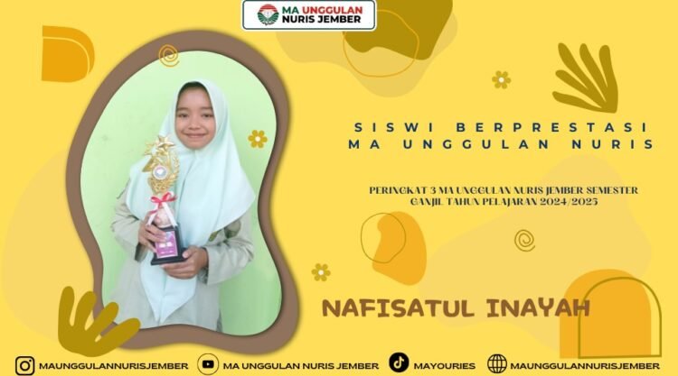 Pesantren Nuris — Keberhasilan seorang siswa dalam menembus jajaran peringkat terbaik di sekolah bukanlah hal yang datang secara tiba-tiba. Banyak proses panjang, ketekunan, dan motivasi mendalam yang menjadi fondasinya. Hal inilah yang tercermin pada sosok Nafisatul Inayah, siswa kelas XID MA Unggulan Nuris Jember yang baru saja menorehkan prestasi membanggakan sebagai Peringkat 3 Semester Ganjil Tahun Pelajaran 2024/2025. Dengan kesederhanaan sikap dan keteguhan tekad, Nafis tampil sebagai salah satu bukti nyata bahwa kerja keras tidak pernah mengkhianati hasil, terlebih jika diiringi dengan niat tulus untuk membahagiakan orang tua dan menjadi pribadi yang bermanfaat.