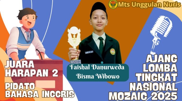 Pesantren Nuris – Faishal Danurweda Bisma Wibowo, atau akrab disapa Bisma, kini menjadi perbincangan hangat di lingkungan akademis Jember. Pelajar berprestasi dari Mts Unggulan Nuris ini baru saja menorehkan pencapaian membanggakan di kancah nasional. Bisma berhasil meraih gelar Juara Harapan 2 dalam kompetisi pidato Bahasa Inggris bergengsi, “MOSAIC 2025,” yang diselenggarakan oleh MAN 1 Jember.