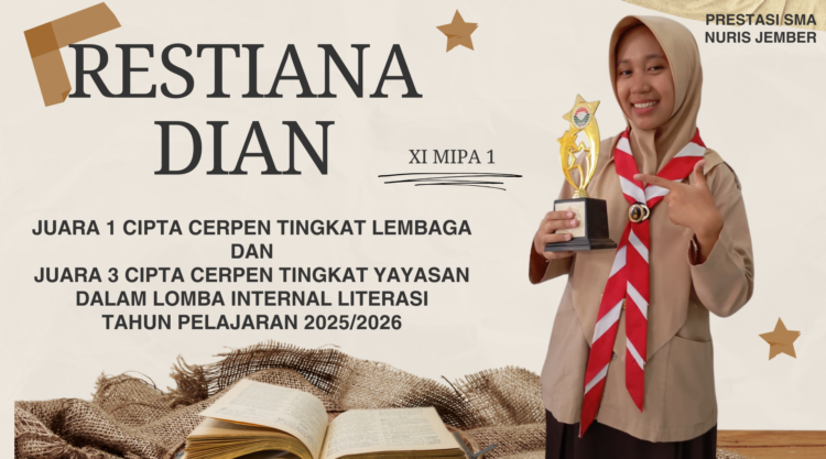 Pesantren Nuris – Kabar membanggakan datang dari siswi asal Silo, Jember, Restiana Dian Anisa yang berhasil memenangkan juara dalam lomba internal literasi tahun pelajaran 2025/2026. Keberhasilan ini sangat luar biasa lantaran Resti tidak hanya membawa satu pencapaian, melainkan dua prestasi. Resti sukses meraih juara 1 Cipta Cerpen Tingkat Lembaga dan Juara 3 Cipta Cerpen Tingkat Yayasan.