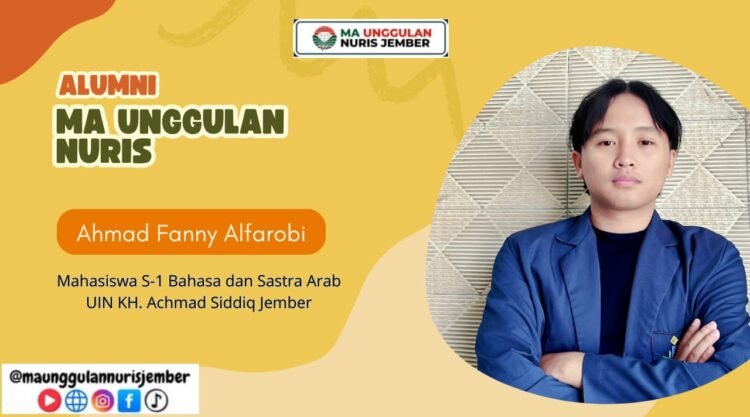 Pesantren Nuris – Sedari nyantri di Pesantren Nuris Jember (MTs Unggulan Nuris tamat tahun 2019) hingga di bangku MA Unggulan Nuris, tahun 2022 Ahmad Fanny Alfarobi sudah akrab dengan bahasa Arab. Ketertarikan untuk mempelajari secara mendalam pun muncul sehingga ia tak ragu untuk mendaftar kuliah pada Jurusan Bahasa dan Sastra Arab di UIN KH. Achmad Siddiq (KHAS) Jember.
