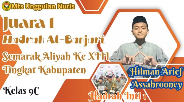 Pesantren Nuris – Ketangkasan tangan dan kepekaan rasa dalam bermusik menjadi kunci sukses tim hadrah MTs Unggulan Nuris di kancah kabupaten. Hilman Arief Assyahroney, siswa kelas 9C yang dikenal memiliki disiplin tinggi, sukses menjadi motor penggerak irama yang mengantarkan timnya meraih posisi tertinggi dalam kompetisi seni islami bergengsi.