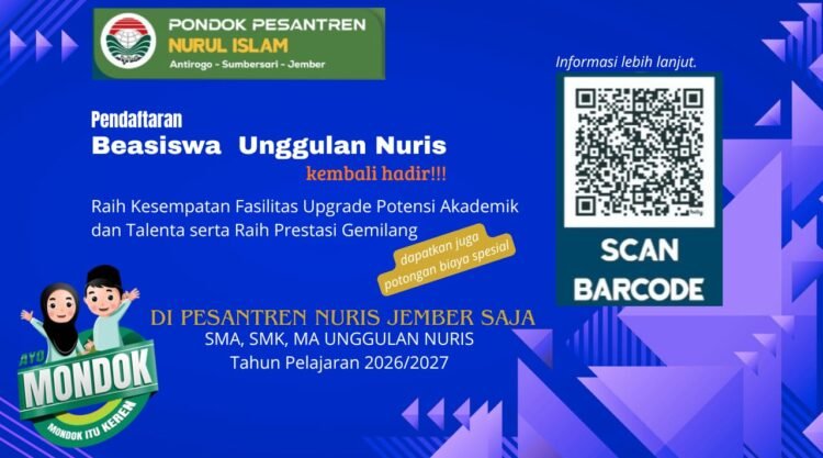 Pesantren Nuris – Para siswa dan santri kelas akhir sekolah menengah pertama atau madrasah tsanawiyah pasti sudah banyak menunggu jadwal pendaftaran seleksi beasiswa unggulan Nuris bukan? Yuk, saatnya persiapkan diri kalian dengan segala potensi terbaik untuk meraih kesempatan upgrade potensi akademik dan talenta hingga berprestasi gemilang di Pesantren Nuris Jember saja.