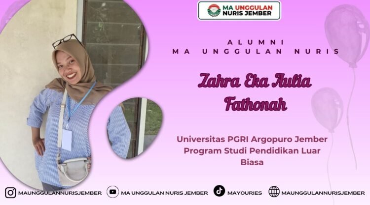 Pesantren Nuris — Setiap alumni memiliki cerita unik tentang perjalanan hidup, mimpi, dan proses yang membentuk dirinya menjadi pribadi yang lebih matang. Salah satu alumni MA Unggulan Nuris tahun 2025 yang memiliki kisah menarik adalah Zahra Eka Aulia Fathonah. Perjalanan Zahra dari bangku pesantren hingga melanjutkan pendidikan ke perguruan tinggi menjadi bukti bahwa proses belajar tidak hanya tentang nilai, tetapi juga tentang pembentukan karakter dan arah hidup.