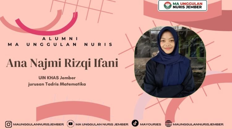 Pesantren Nuris — Ana Najmi Rizqi Ifani merupakan salah satu alumni MTs Unggulan Nuris yang melanjutkan pendidikannya hingga MA Unggulan Nuris dan lulus pada tahun 2025. Lahir di Jember pada tahun 2007, Ana dikenal sebagai sosok yang tenang, tekun, dan memiliki semangat belajar yang konsisten sejak menjadi santri.