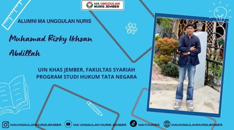 Pesantren Nuris — Setiap alumni memiliki kisah perjalanan hidup yang penuh makna, perjuangan, dan harapan. Salah satu alumni MA Unggulan Nuris tahun 2025 yang patut dibanggakan adalah Muhamad Rizky Ikhsan Abdillah, atau yang akrab disapa Rizky Ikhsan. Sosok yang dikenal sederhana, tekun, dan memiliki semangat belajar tinggi ini kini melanjutkan pendidikannya di UIN KHAS Jember, Fakultas Syariah, Program Studi Hukum Tata Negara.