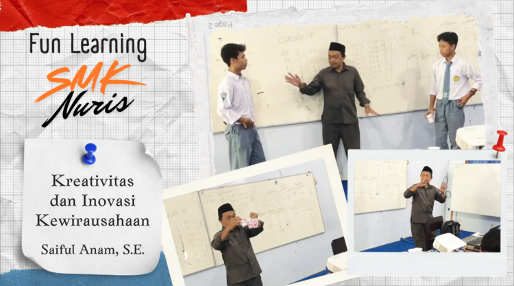 Pesantren Nuris – Pembelajaran mata pelajaran Kewirausahaan di SMK Nuris Jember terus dikembangkan dengan pendekatan yang kreatif dan menyenangkan. Salah satunya terlihat dalam kegiatan fun learning (Selasa, 20/1) yang disampaikan oleh Saiful Anam, S.E., kepada siswa kelas XI TKJ B. Bertempat di laboratorium komputer SMK Nuris Jember, pembelajaran tersebut berlangsung interaktif dengan menekankan pemahaman praktik dunia usaha secara kontekstual.