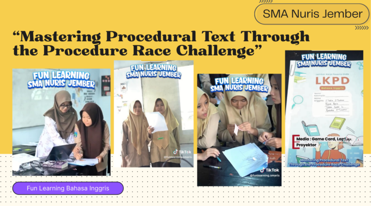 Pesantren Nuris – Pendidikan modern menuntut kreativitas guru dalam menyampaikan materi agar siswa tidak merasa jenuh. Hal inilah yang mendasari pelaksanaan program fun learning di kelas X-4 SMA Nuris Jember dengan judul utama “Mastering Procedural Text Through the Procedure Race Challenge”. Kegiatan ini berhasil mengubah suasana kelas menjadi arena kompetisi intelektual yang seru dan penuh semangat.