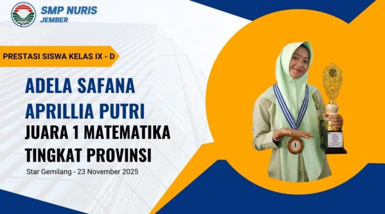 Pesantren Nuris – SMP Nuris Jember kembali mencuri perhatian melalui prestasi Adela Safana Aprillia Putri yang sukses meraih Juara 1 bidang Matematika tingkat provinsi. Kemenangan ini diraih dalam ajang Star Gemilang yang mempertemukan siswa-siswa terbaik dari berbagai daerah. “Saya ikut lomba ini untuk menambah pengalaman dan membanggakan orang tua,” tutur Adela.
