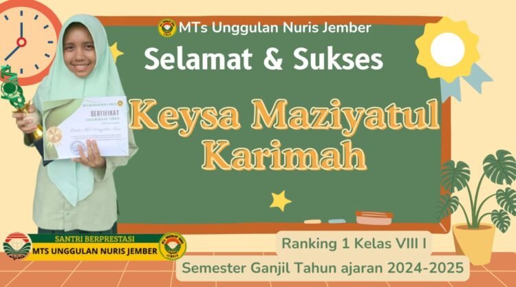 Dengan pencapaian juara pertama pada semester ganjil tahun ajaran 2024–2025, Keysa Maziyatul Karimah diharapkan mampu mempertahankan prestasinya serta terus mengembangkan potensi akademik di jenjang berikutnya. Keberhasilan ini menunjukkan bahwa kerja keras, kedisiplinan, dan kesungguhan dalam belajar akan membuahkan hasil yang membanggakan.[SM.Red]