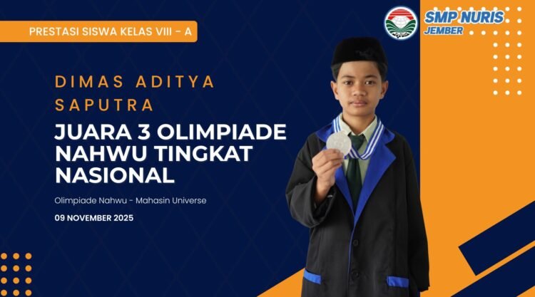 Pesantren Nuris – SMP Nuris Jember kembali menunjukkan eksistensinya di tingkat nasional melalui prestasi yang diraih Dimas Aditya S pada Olimpiade Nahwu. Ia berhasil meraih Juara 3 tingkat nasional dalam ajang yang diikuti peserta dari berbagai daerah di Indonesia. “Saya tidak menyangka bisa sampai di tingkat nasional dan meraih juara,” ujar Dimas.