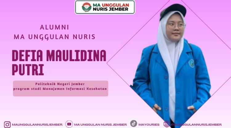 Pesantren Nuris — MA Unggulan Nuris kembali menampilkan sosok alumni inspiratif yang melanjutkan kiprahnya ke jenjang pendidikan tinggi dengan membawa semangat pengabdian dan cita-cita mulia. Alumni tersebut adalah Defia Maulidina Putri, alumni MA Unggulan Nuris tahun 2025 yang saat ini tengah menempuh pendidikan di Politeknik Negeri Jember pada program studi Manajemen Informasi Kesehatan. Perjalanan akademik Defia menjadi bukti bahwa pendidikan pesantren mampu melahirkan generasi yang tidak hanya cerdas secara intelektual, tetapi juga memiliki kepedulian tinggi terhadap kemaslahatan masyarakat.