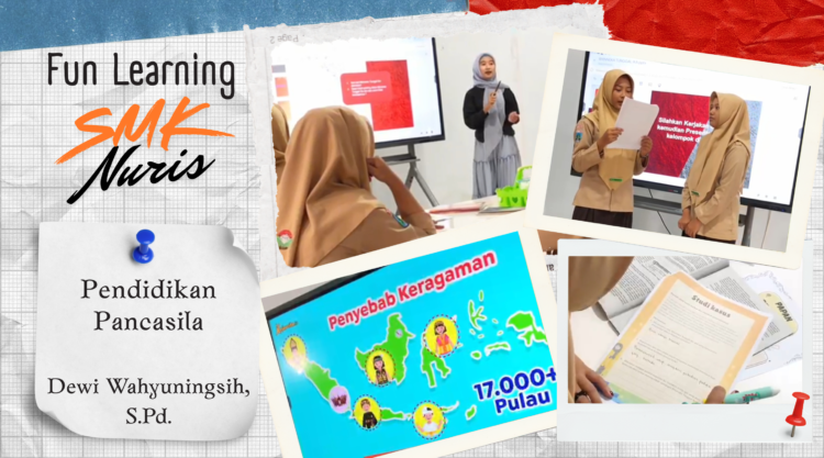 Pesantren Nuris – Pembelajaran Pendidikan Pancasila di SMK Nuris Jember tidak hanya menekankan pemahaman konsep, tetapi juga penguatan sikap dan karakter kebangsaan. Hal tersebut tercermin dalam kegiatan fun learning yang disampaikan oleh Dewi Wahyuningsih, S.Pd., kepada siswi kelas X TKJ A. Bertempat di Aula SMK Nuris Jember, pembelajaran berlangsung dinamis dengan memanfaatkan teknologi dan pendekatan pembelajaran berbasis masalah.
