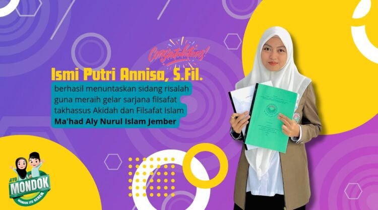 Pesantren Nuris – Ma’had Aly Nurul Islam (Nuris) Jember terus mencetak sarjana di bidang akidah dan filsafat Islam. Kali ini, giliran Ismi Putri Annisa berhasil menggapainya usai mempertanggungjawabkan risalah yang terinspirasi Kitab Takwil Musykilah al Bukhari di hadapan para muallim (dosen) dengan percaya diri pada 23 Agustus 2025 lalu.