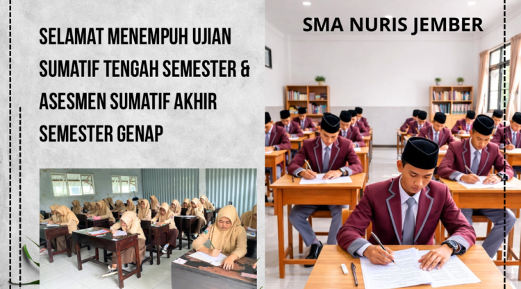 Pesantren Nuris – Suasana berbeda tampak di lingkungan SMA Nuris Jember pada Jumat, 27 Februari 2026. Sejak pagi hari, para santri bersiap mengikuti ujian yang akan berlangsung hingga 11 Maret 2026. Untuk kelas X dan XI, pelaksanaan ujian berupa Sumatif Tengah Semester (STS), sedangkan kelas XII mengikuti Asesmen Sumatif Akhir Semester (ASAS) Genap.