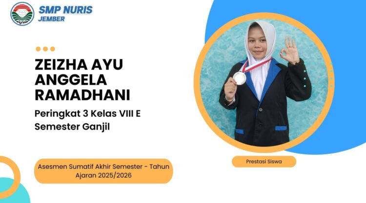 Pesantren Nuris – Zeizha Ayu Anggela Ramadhani atau yang akrab disapa Sesa berhasil meraih peringkat tiga dalam ASAS semester ganjil tahun ajaran 2025/2026 di SMP Nuris Jember. Hasil tersebut menjadi capaian yang tidak ia duga sebelumnya. “Gak nyangka bisa sampai di peringkat tiga,” ungkapnya.
