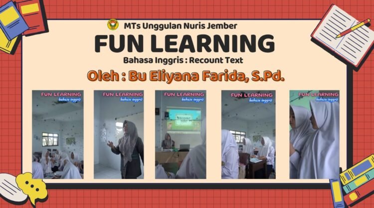 Pesantren Nuris – MTs Unggulan Nuris Jember kembali melaksanakan kegiatan Fun Learning pada mata pelajaran Bahasa Inggris dengan materi Recount Text. Kegiatan ini menjadi bagian dari pembelajaran yang dirancang untuk membantu siswa memahami struktur dan kaidah penulisan teks recount secara lebih mudah dan menyenangkan.