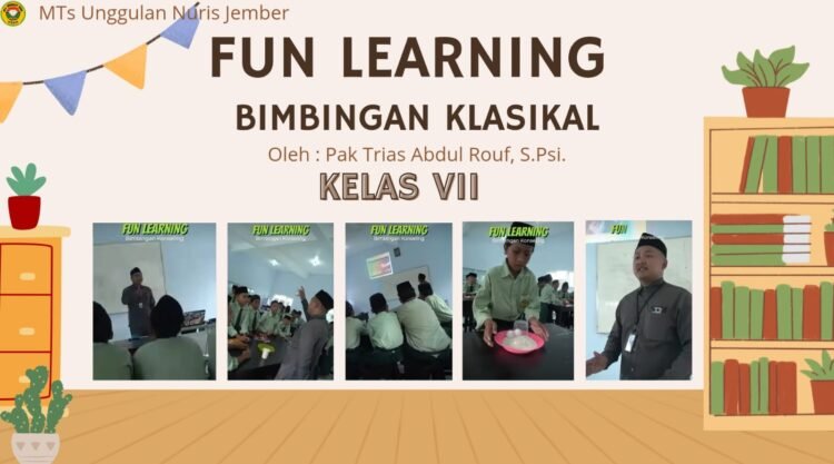 Pesantren Nuris – MTs Unggulan Nuris Jember kembali menyelenggarakan kegiatan Fun Learning Bimbingan Klasikal bagi siswa kelas VII sebagai bagian dari layanan bimbingan dan konseling yang edukatif dan menyenangkan. Kegiatan ini dirancang untuk membantu siswa memahami diri, lingkungan, serta mengembangkan sikap positif melalui pendekatan pembelajaran yang interaktif.