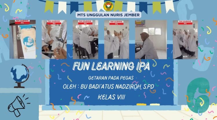 Pesantren Nuris – MTs Unggulan Nuris Jember melaksanakan kegiatan Fun Learning mata pelajaran Ilmu Pengetahuan Alam (IPA) untuk siswa kelas VIII dengan mengusung materi Getaran pada Pegas. Kegiatan pembelajaran ini bertujuan untuk meningkatkan pemahaman konsep IPA melalui metode yang menyenangkan, aktif, dan berbasis praktik langsung di dalam kelas.