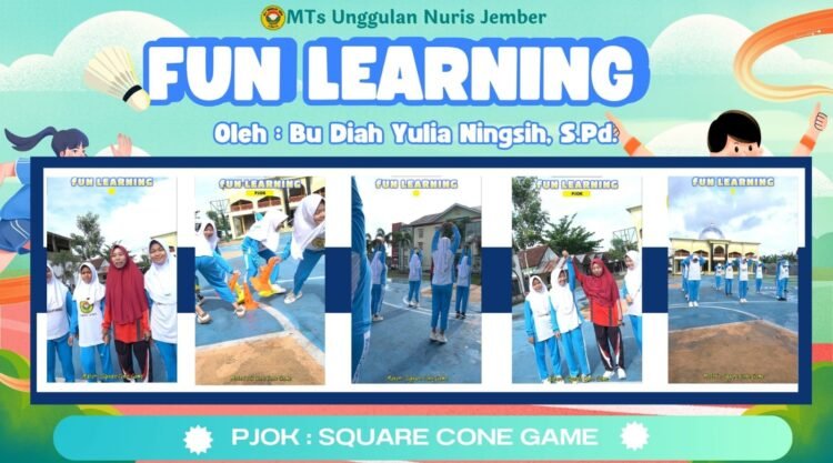 Pesantren Nuris – MTs Unggulan Nuris Jember kembali melaksanakan kegiatan Fun Learning dalam mata pelajaran PJOK dengan materi Square Cone Game. Kegiatan ini diikuti oleh para siswa sebagai bagian dari pembelajaran yang dirancang untuk meningkatkan kebugaran jasmani sekaligus melatih kerja sama dan kekompakan tim melalui metode yang menyenangkan dan interaktif.