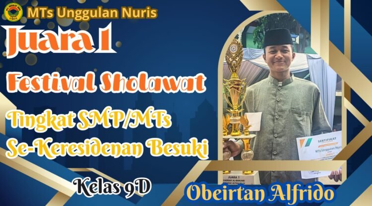 Pesantren Nuris – Gema sholawat berkumandang syahdu di pelataran Masjid At Taqwa Bondowoso dalam ajang bergengsi “Festival Sholawat” tingkat SMP/MTs se-Karesidenan Besuki. Di antara puluhan peserta yang tampil memukau, muncul satu nama yang berhasil mencuri perhatian dewan juri dan penonton melalui lantunan suaranya yang menggetarkan jiwa.