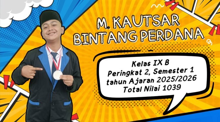 Pesantren Nuris — Prestasi kembali bersemi di lingkungan SMP Nuris Jember. Kali ini, kabar membanggakan datang dari siswa kelas IX B, Muhammad Kautsar Bintag Perdana, yang berhasil meraih peringkat 2 di kelasnya dengan total nilai 1039 pada Semester 1 Tahun Ajaran 2025/2026. Capaian tersebut bukan sekadar angka, melainkan bukti dari kerja keras yang dirajut dengan kesungguhan dan doa.