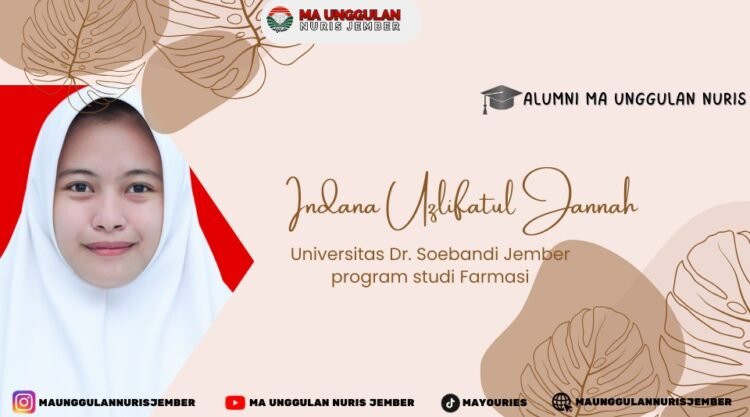 Pesantren Nuris — Setiap alumni memiliki cerita perjuangan yang berbeda dalam meraih masa depan. Salah satu kisah inspiratif datang dari Indana Uzlifatul Jannah, alumni MTs dan MA Unggulan Nuris, yang kini tengah menempuh pendidikan di Universitas Dr. Soebandi Jember pada program studi Farmasi. Perjalanan hidup dan pendidikannya menjadi bukti bahwa ketekunan, kesabaran, dan rasa syukur mampu mengantarkan seseorang menuju kesuksesan.