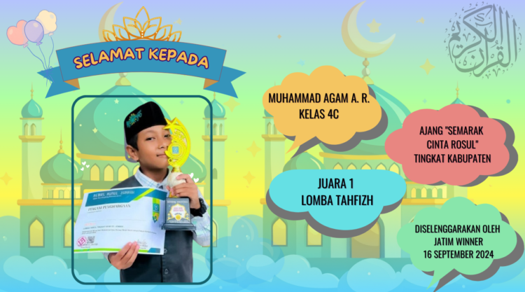 Selamat untuk Muhammad Agam Abdillah Ramdhan atas prestasinya. Teruslah melantunkan ayat suci, teruslah menjadi inspirasi bagi teman-temanmu di MI Unggulan Nuris Jember. Kami yakin, masa depan yang cerah dan penuh berkah sedang menantimu di depan sana. Barakallah. [FE.Red]