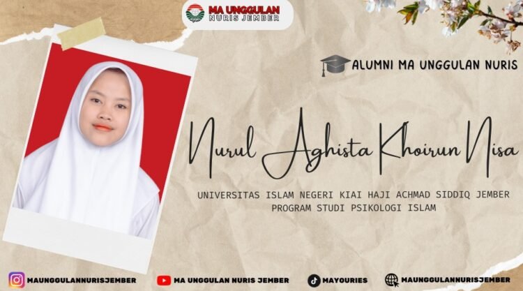Pesantren Nuris — Setiap alumni memiliki cerita unik dalam menapaki perjalanan hidup dan pendidikannya. Salah satu kisah inspiratif datang dari Nurul Aghista Khoirun Nisa, alumni MA Unggulan Nuris tahun 2025, yang kini tengah melanjutkan studinya di Universitas Islam Negeri Kiai Haji Achmad Siddiq Jember pada program studi Psikologi Islam. Perjalanan yang ia tempuh menjadi bukti bahwa mimpi, niat baik, dan ketekunan mampu membawa seseorang menuju masa depan yang lebih cerah.