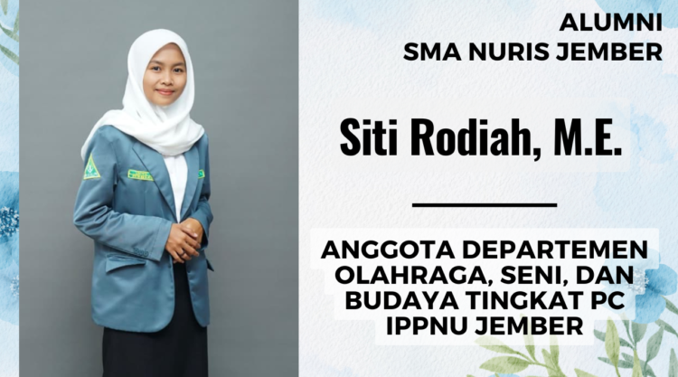 Pesantren Nuris – Dunia organisasi pelajar sering kali menjadi ruang awal tumbuhnya kesadaran, kepemimpinan, dan pengabdian. Dari ruang inilah kisah Siti Rodiah, M.E., alumni SMA Nuris Jember belajar berorganisasi. Lulusan tahun 2019 dari kelas XII IPS 1 ini membuktikan bahwa perjalanan selepas sekolah dapat terus bermakna ketika dijalani dengan semangat berorganisasi dan kepedulian sosial.