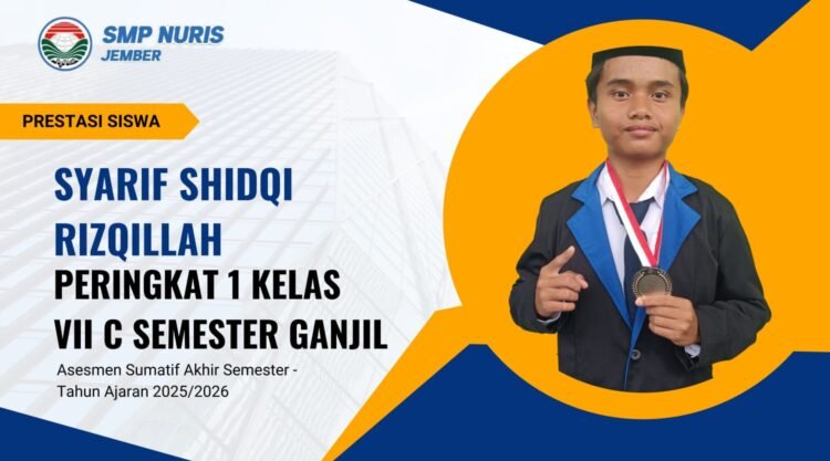 Pesantren Nuris – Prestasi gemilang kembali diraih siswa SMP Nuris Jember melalui capaian Syarif Shidqi Rizqillah yang berhasil meraih peringkat satu dalam ASAS semester ganjil tahun ajaran 2025/2026. Hasil ini menunjukkan peningkatan keseriusan dalam proses belajar. Rizqi mengungkapkan, “Saya sangat bangga dan bahagia bisa mendapatkan hasil ini.”