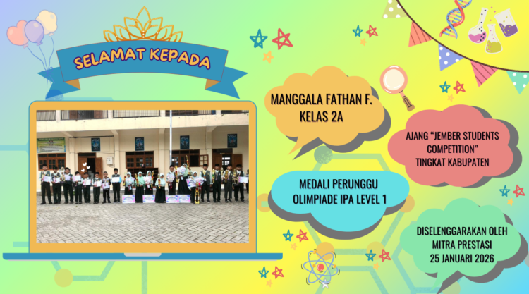 Prestasi membanggakan ini diraih Atan dalam kompetisi tingkat Kabupaten yang diselenggarakan oleh Mitra Prestasi pada tanggal 25 Januari 2026 lalu. Bersaing dengan ratusan siswa se-Kabupaten Jember, Atan membuktikan bahwa siswa kelas 2 MI pun mampu menaklukkan soal-soal sains yang menantang nalar.