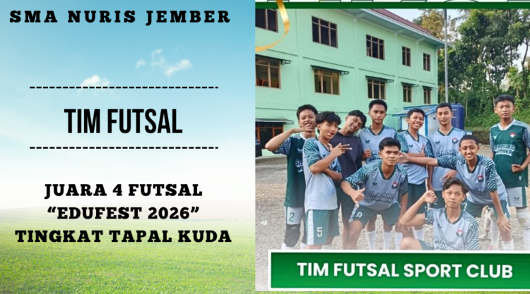 Pesantren Nuris – Prestasi membanggakan kembali ditorehkan oleh siswa SMA Nuris Jember. Tim futsal SMA Nuris berhasil meraih Juara 4 dalam ajang Futsal “Edufest 2026” tingkat Tapal Kuda yang diselenggarakan oleh PP Nurul Qarnain Sukowono Jember pada 28 Januari 2026. Kompetisi ini diikuti oleh berbagai sekolah dari wilayah Tapal Kuda dan berlangsung dalam suasana kompetitif serta penuh sportivitas.