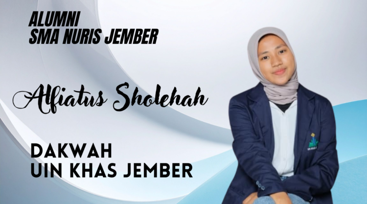 Pesantren Nuris – Alfiatus Sholehah, alumni SMA Nuris Jember tahun 2023, kini melanjutkan pendidikan di UIN Kiai Haji Achmad Siddiq Jember pada Program Studi Komunikasi dan Penyiaran Islam (KPI), Fakultas Dakwah. Mahasiswi yang berasal dari Sudung Barat, Kecamatan Jelbuk, Kabupaten Jember ini saat ini tengah menempuh semester enam dan berkomitmen untuk menyelesaikan studinya dengan hasil terbaik serta lulus tepat waktu.