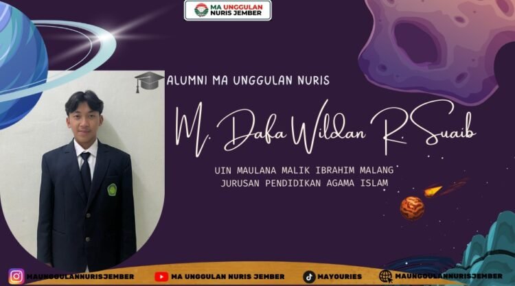 Pesantren Nuris — M. Dafa Wildan R. Suaib merupakan salah satu alumni yang lahir dari lingkungan pendidikan Nuris dan menjadi kebanggaan almamaternya. Lahir di Ternate pada tahun 2007, Dafa tumbuh sebagai pribadi yang sederhana, mandiri, dan penuh semangat dalam menuntut ilmu. Berasal dari wilayah timur Indonesia, ia berani merantau jauh demi mendapatkan pendidikan terbaik dan mewujudkan cita-citanya.