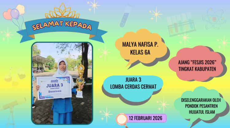 Siswi itu bernama Malya Nafisa Prakoso, dia juga berasal dari kelas 6-A, sama seperti Hisyam. Malya pun juga ikut turut andil dalam membawa pulang trofi Juara 3 Lomba Cerdas Cermat Tingkat Kabupaten. Bersama kedua rekannya, Malya berhasil menaklukkan panggung kompetisi yang diselenggarakan oleh Pondok Pesantren Hujjatul Islam pada tanggal 12 Februari 2026 lalu.