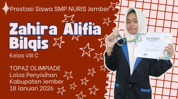 Pesantren Nuris — Semangat juang dan kecintaan pada ilmu pengetahuan kembali membuahkan hasil manis. Zahira Alifia Bilqis, siswi kelas VIII C SMP Nuris Jember, berhasil lolos seleksi babak penyisihan tingkat kabupaten dalam bidang SAINS pada ajang TOPAZ Olimpiade tingkat Nasional. Kompetisi yang diselenggarakan oleh Topaz Global Education ini berlangsung di SDN Kepatihan 3 Jember pada 18 Januari 2026 dan diikuti oleh puluhan peserta dari berbagai sekolah di Kabupaten Jember.