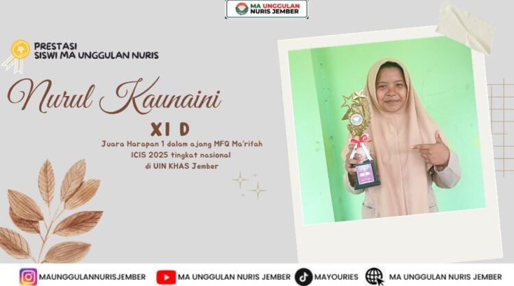 Pesantren Nuris — Nurul Kaunaini, yang akrab disapa Auna, merupakan salah satu siswi kelas XI D di MA Unggulan Nuris Jember yang berhasil menorehkan prestasi membanggakan di tingkat nasional. Siswi yang berasal dari Banyubiru, Negara, Jembrana ini menunjukkan bahwa semangat belajar dan keberanian mencoba hal baru mampu membawa seseorang menuju pencapaian yang luar biasa.