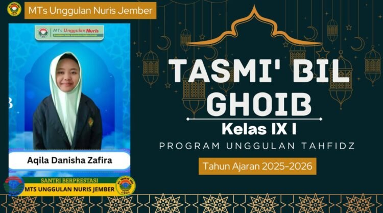 Pesantren Nuris – Prestasi membanggakan kembali ditorehkan oleh santri MTs Unggulan Nuris Jember melalui kegiatan Tasmi’ Bil Ghoib yang dilaksanakan dalam Program Unggulan Tahfidz Tahun Ajaran 2025–2026. Salah satu santri yang berhasil menunjukkan capaian luar biasa tersebut adalah Aqila Danisha Zafira dari kelas IX I.