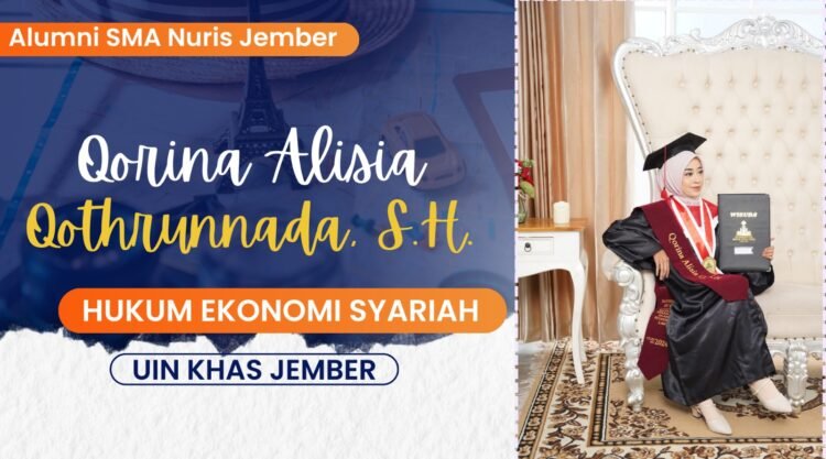 Pesantren Nuris – Perjalanan akademik seseorang sering kali membawa kejutan yang tak terduga. Hal inilah yang dialami oleh Qorina Alisia Qothrunnada, S.H., atau yang akrab disapa Nada. Alumni SMA Nuris Jember jurusan IPA tahun 2018 ini baru saja merayakan momen bersejarah dalam hidupnya. Tepat pada tanggal 7 Mei 2025, Nada resmi diwisuda dan menyandang gelar Sarjana Hukum (S.H.).