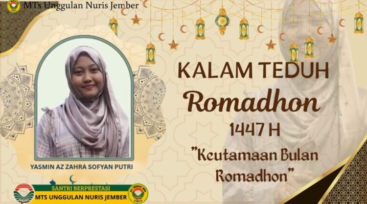 Pesantren Nuris – MTs Unggulan Nuris Jember kembali menghadirkan kegiatan keagamaan yang inspiratif melalui program Kalam Teduh Ramadhan 1447 H. Dalam kegiatan tersebut, salah satu siswi berprestasi, Yasmin Az Zahra Sofyan Putri, berkesempatan menyampaikan materi bertema “Keutamaan Bulan Ramadhan”. Kegiatan ini menjadi bagian dari upaya sekolah dalam menumbuhkan semangat religius serta memperdalam pemahaman keislaman di kalangan peserta didik.
