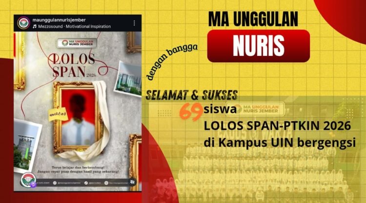 Pesantren Nuris – Setelah 19 siswa MA Unggulan Nuris berhasil menebus ketatnya SNBP (Seleksi Nasional Berbasis Prestasi) tahun 2026 pada Selasa, 31 Maret 2026 lalu, kali ini 69 siswa dinyatakan jalur prestasi lainnya yakni, SPAN-PTKIN (Seleksi Prestasi Akademik Nasional Perguruan Tinggi Keagamaan Islam Negeri) yang diumumkan pada Selasa, 07 April 2026 kemarin melalui website kepanitian Kemenag RI.