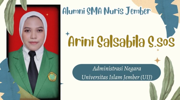 Pesantren Nuris – Prestasi membanggakan kembali diukir oleh alumni SMA Nuris Jember. Arini Salsabila, S.Sos., alumni jurusan IPS tahun 2021 ini sukses menyelesaikan studi sarjananya di Program Studi Administrasi Negara, Fakultas Ilmu Sosial dan Ilmu Politik (FISIP), Universitas Islam Jember (UIJ). Alumni yang akrab disapa Bila ini resmi menyandang gelar Sarjana Sosial dalam prosesi wisuda yang digelar pada 20 Desember 2025.