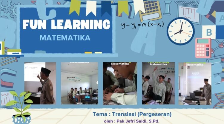 Pesantren Nuris – Pembelajaran Matematika di MTs Unggulan Nuris kembali dikemas secara menarik melalui kegiatan Fun Learning. Kali ini, siswa diajak memahami materi translasi (pergeseran) bersama guru pengampu, Pak Jefri Saldi, S.Pd. Kegiatan berlangsung dengan suasana kelas yang aktif dan penuh semangat, di mana siswa tidak hanya mendengarkan penjelasan, tetapi juga terlibat langsung dalam proses pembelajaran.