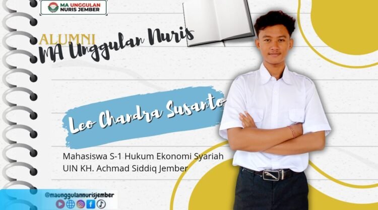 Pesantren Nuris – Nyantri di Pesantren Nuris Jember sejak di bangku MTs Unggulan Nuris hingga MA Unggulan Nuris, kompetensi Leo Chandra Susanto dalam mengaji kitab kuning tak perlu diragukan lagi. Apalagi, ia memang menghuni kelas unggulan kitab kuning. Berkat kedisiplinan dan kecerdasannya, ia pun lolos ke bangku kuliah lewat jalur prestasi nasional.