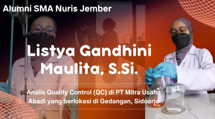 Pesantren Nuris – Kabar membanggakan kembali datang dari alumni SMA Nuris Jember. Kali ini, Listya Gandhini Maulita, S.Si., lulusan tahun 2021, berhasil meniti karier gemilang sesaat setelah menyelesaikan studinya di Jurusan Kimia, Fakultas Sains dan Analitika Data, Institut Teknologi Sepuluh Nopember (ITS) Surabaya. Saat ini, alumni yang akrab disapa Listya tersebut telah resmi bekerja di PT Mitra Usaha Abadi yang berlokasi di Gedangan, Sidoarjo.