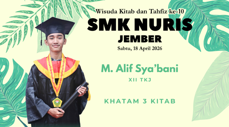 Pesantren Nuris – Di tengah padatnya aktivitas sebagai siswa SMK, M. Alif Sya’bani justru mampu menorehkan capaian luar biasa. Siswa kelas XII jurusan Teknik Komputer dan Jaringan (TKJ) SMK Nuris Jember ini berhasil mengkhatamkan tiga kitab kuning sekaligus, yakni 101 Hadis, Ta’lim Muta’allim, dan Safinatunnajah. Prestasi ini menjadi bukti kesungguhan dan konsistensinya dalam menuntut ilmu, khususnya di bidang keagamaan.