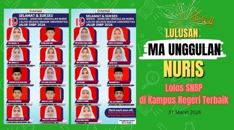 Pesantren Nuris – Pengumuman SNBP (Seleksi Nasional Berbasis Prestasi) tahun 2026 telah dirilis oleh Panitia SNPMB (Seleksi Nasional Penerimaan Mahasiswa Baru) Kemendikbud per Selasa, 31 Maret 2026 kemarin pukul 15.00 WIB melalui laman https://pengumuman-snbp.snpmb.id/. Dengan bangga, 19 siswa MA Unggulan Nuris telah dinyatakan lolos. Jumlah ini meningkat dari tahun sebelumnya 2025 lalu yang hanya 8 siswa yang lolos.